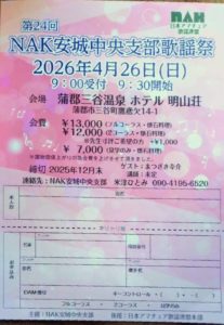 2026/04/26 NAK安城中央支部歌謡祭 ゲスト出演【愛知県】新着!!